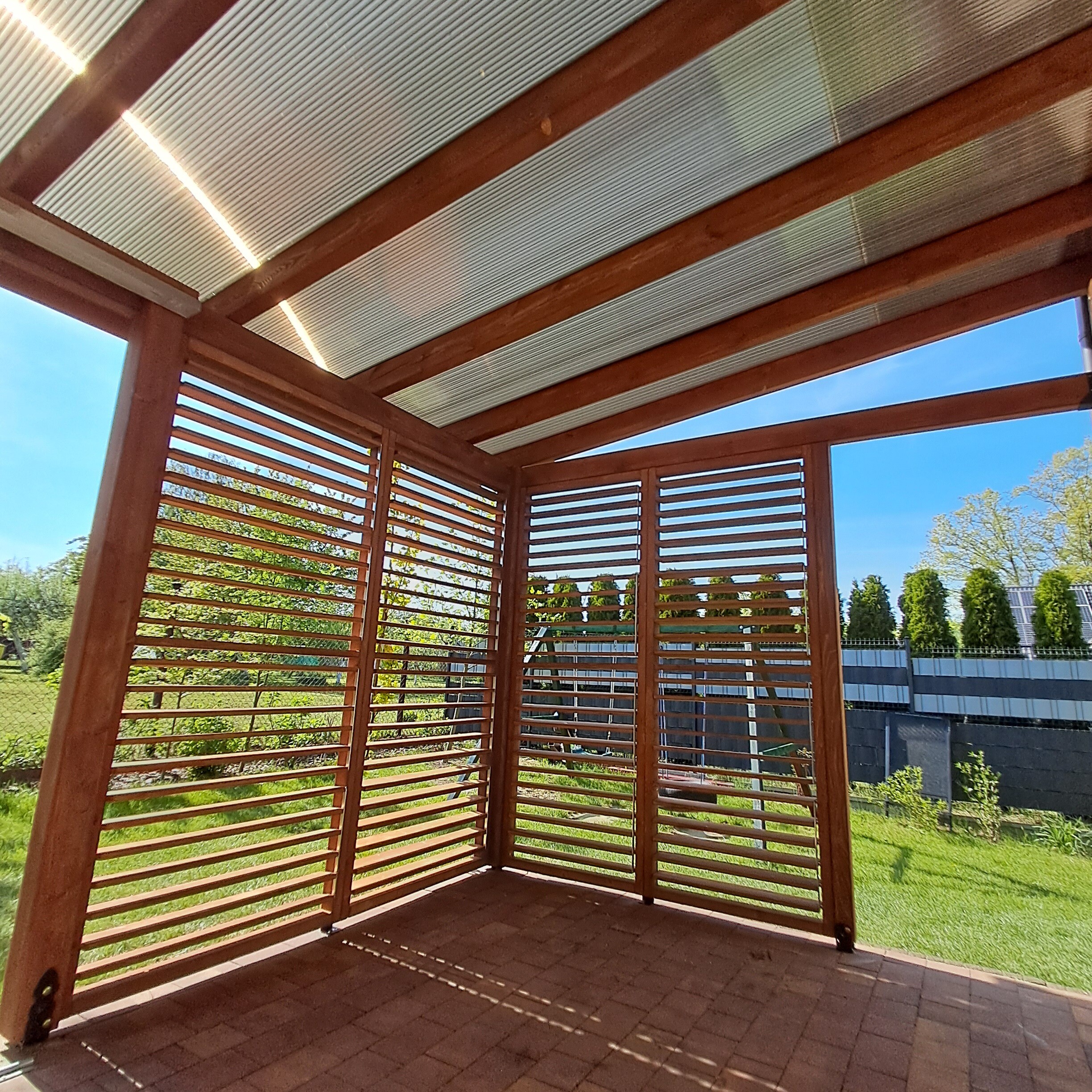 Personalizowane zadaszenia tarasowe z wysokiej jakości drewna, estetyczne i trwałe.