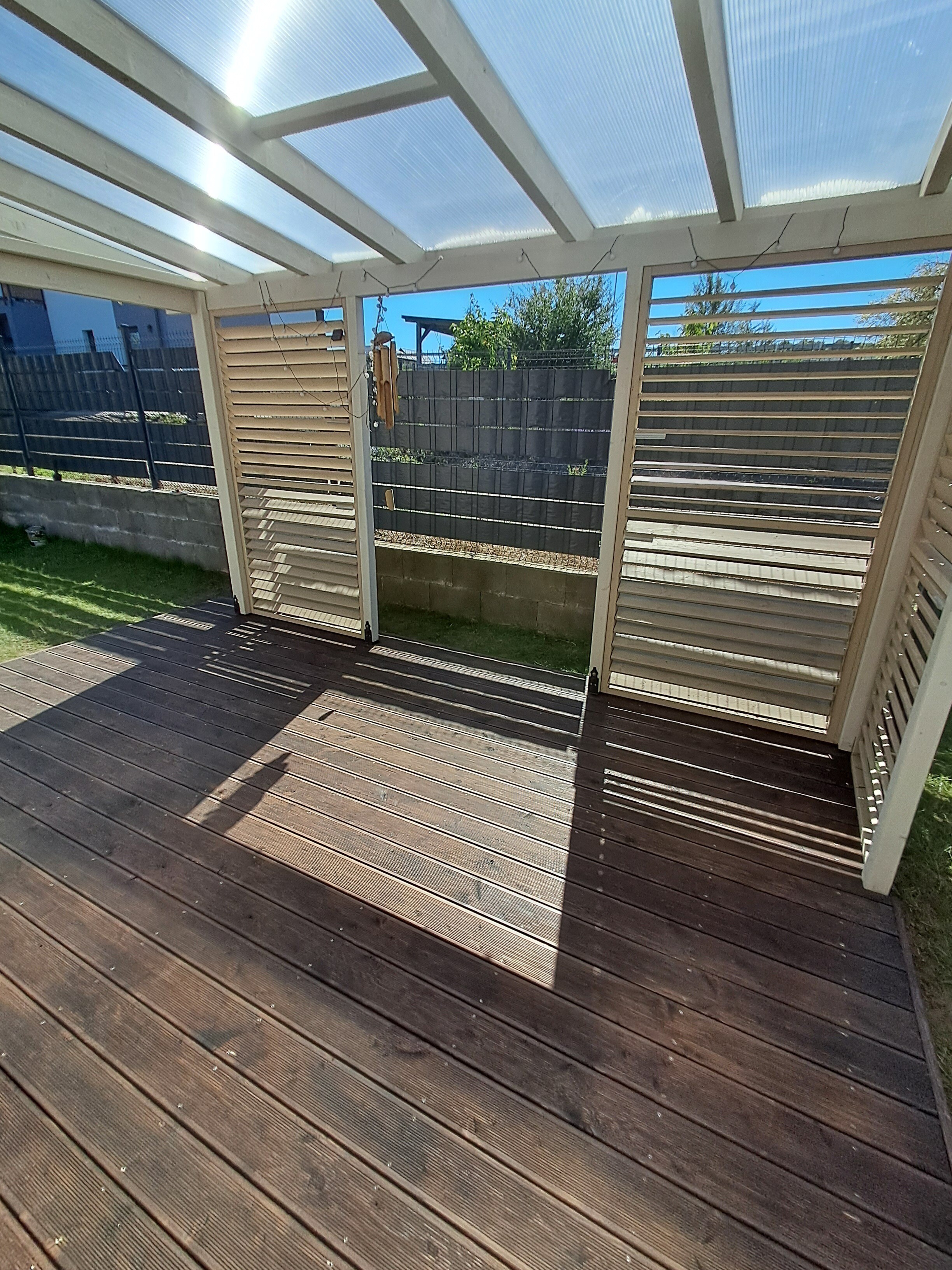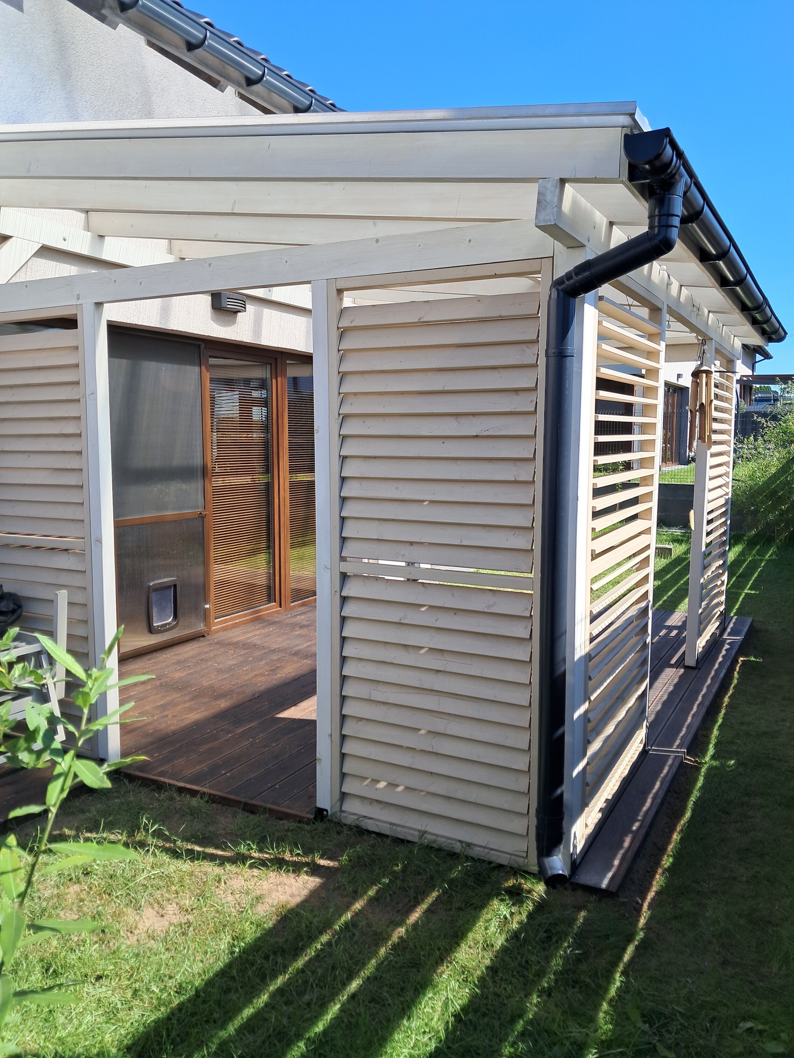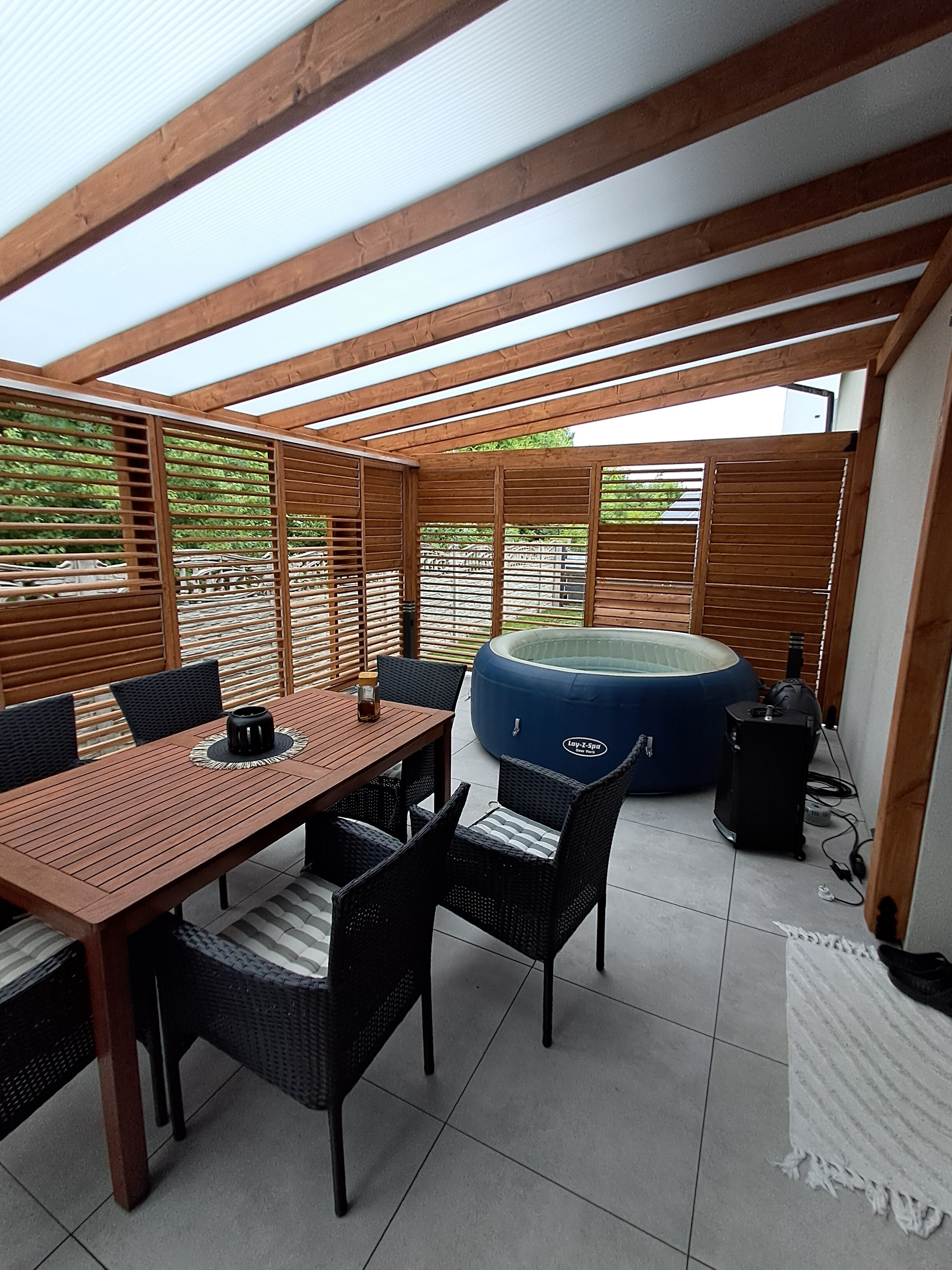 Jestem bardzo zadowolony z jakości zadaszenia tarasowego, które zamówiłem. Drewno wygląda pięknie.